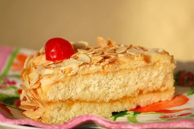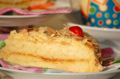 * Paint the inside layers with the syrup and the apricot jam. Reassemble.