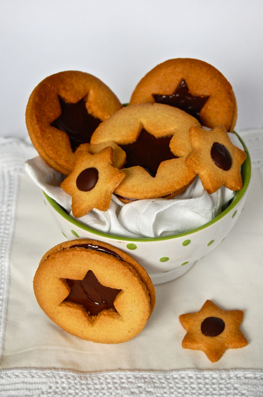 Ingredients for a batch of 20 cookies aprox: 260 grs of sifted all purpose flour, 226 grs of butter, 150 grs of ground toasted almonds, half a teaspoon of ground cinnamon, 2 grs of salt, 150 grs of white sugar, 1 teaspoon of vanilla extract, 2 large egg yolks. 150 grs of black chocolate.