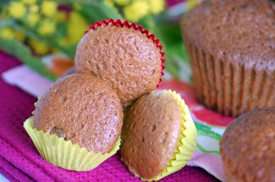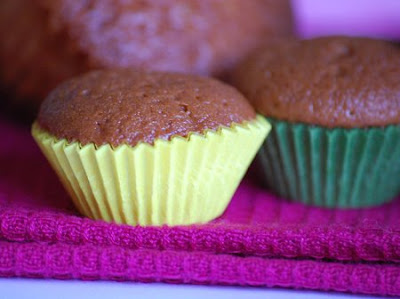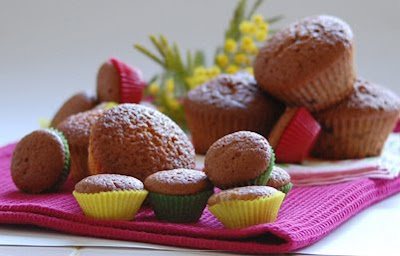 Ingredients for 1 batch (aprox. 17 or 18 units): 1 natural yogurt (125grs), 3 eggs, 16 grs of baking powder. Once you have the recipient of the yogurt empty: 3 recipients full of flour, 2 recipients full of sugar and 1 recipient full of olive oil 0,4º. These are the basic ingredients; now, if you want to give them a little twist, you'll also need: 1 tablespoon of lemon curd, 1 tablespoon of cocoa powder and 2 tablespoons of chocolate chips.
