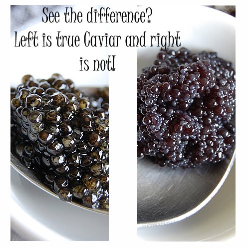 True Caviar is the female’s sturgeon roe. Everything else is just a substitute or other fish roe. The substitutes are often Lumpfish, cod, salmon, mullet… all but Sturgeon. There are twenty-five varieties of sturgeon, three of them can be captured in the Caspian Sea: beluga, Ossetra, sevruga. The price of caviar is reflected in the rarity or availability of sturgeon.