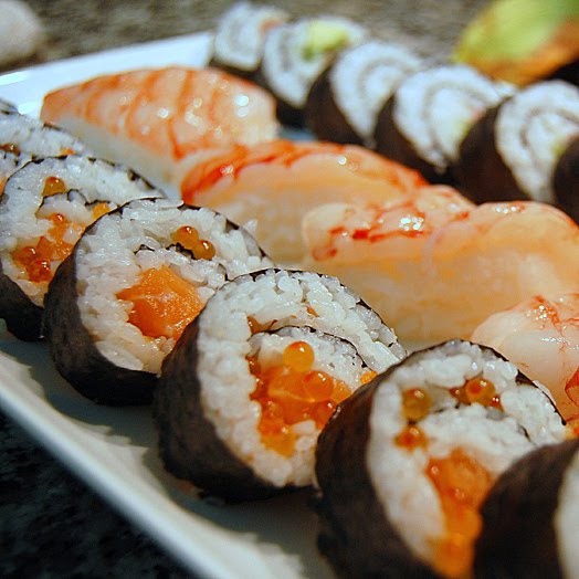 felicidaded en haber hecho todo ese sushi! mi favorito! i loooove sushi. que cosa mas rica. hace mucho tiempo que no lo hago en casa por el detalle y atencion que requiere!