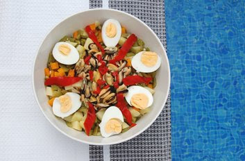 A fresh salad by the pool. If you want to know the recipe, please head to Ensaladilla Rusa. This one also has some mussels and pimientos del piquillo. Don’t forget to have some allioli over it!!!