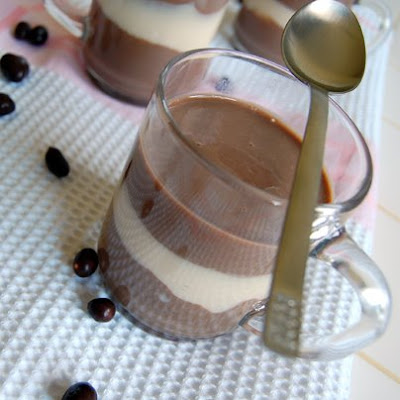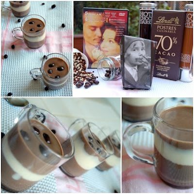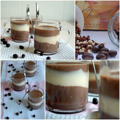 I have loved chocolate ever since! I only know 1 person who doesn’t enjoy chocolate! My sister in law… I keep on forgetting every time she comes over and I offer her something chocolaty… so today I’m offering you all this fantastic bi coloured dessert: Vanilla and Chocolate with chocolaty peanut. I’m also sending it over to Susan from Sticky, Gooey, Creamy, Chewy and Marc from NoRecipes and their brand new Event: Dinner & Movie. Come join and see Chocolate, the movie!