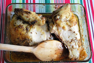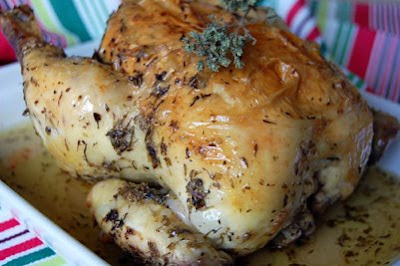 Drunken Chicken. Ingredients for 4 servings: 1 chicken, 2 tablespoons of dry thyme, 2 tablespoons of dry oregano, some olive oil, salt and black ground pepper and half a can of beer.