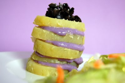 - Prepare your purple potatoes puree with some butter, chicken stock, olive oil and salt (or the way you usually prepare it)