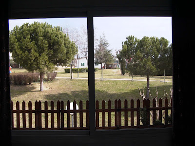 I love Lynda’s blog, but I haven’t sent my picture because all I can see from my kitchen window is my backyard, that needs a lot of work, the back alley with the big ugly trash cans and the abandoned house in the other side of the street, not very pretty. Hehehe