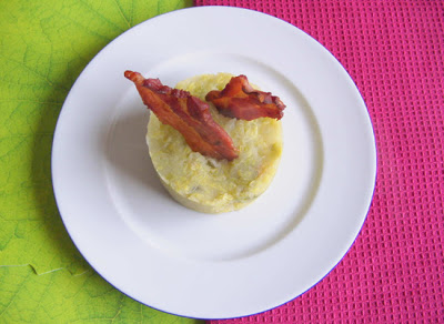 * Make whatever shape you like with the veggies and present on a plate with the bacon flags on top. Once the shape is done, and before putting the bacon on top, you can also golden it a bit with some hot olive oil in another pan so that it gets a bit crusty.