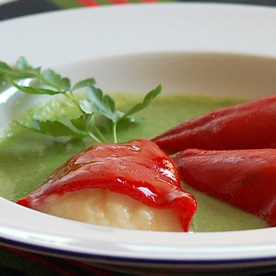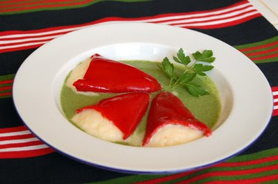 Piquillos Stuffed with Cod Brandade over Parsley sauce